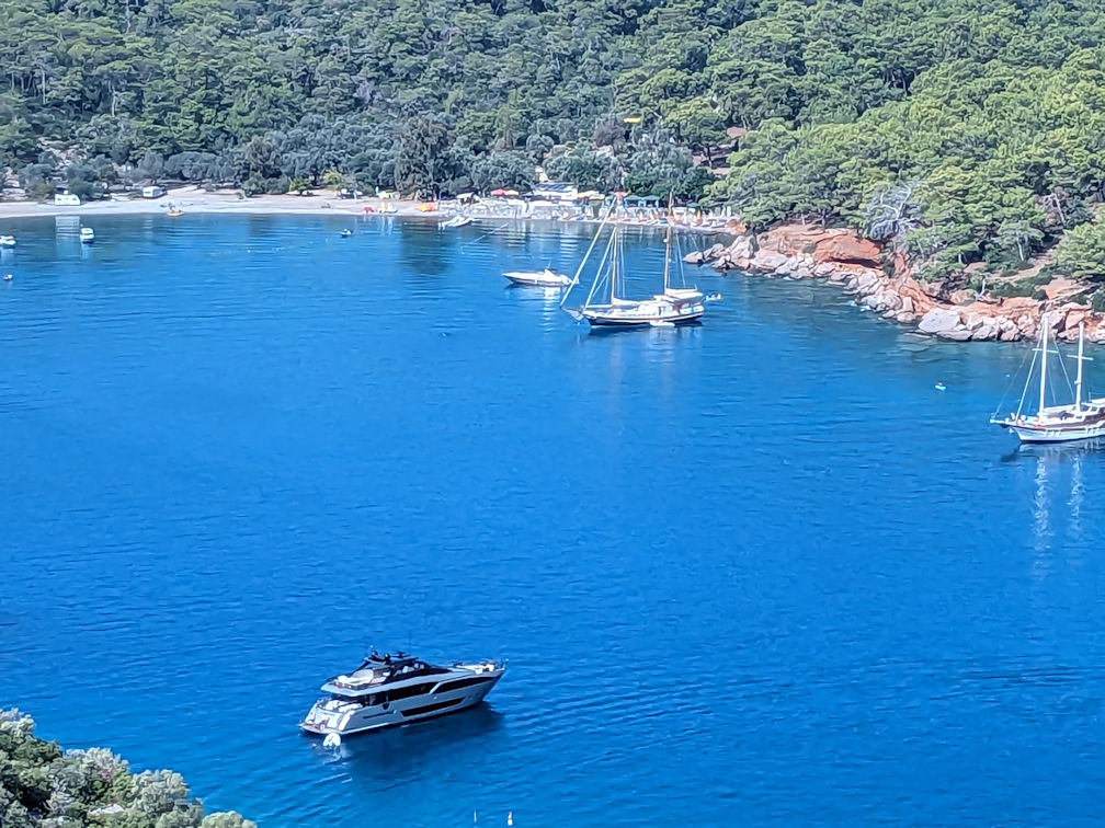Gulet Cruise from Fethiye to MarmarisThe five-day gulet (updated version of the traditional Turkish boat) cruise on the Mediterranean started at Fethiye just across from Rhodes, Greece and ended at Marmaris. The goulet stopped at several inlets where we went snorkeling, and got on land to hike and visit various historical sites and ruins.