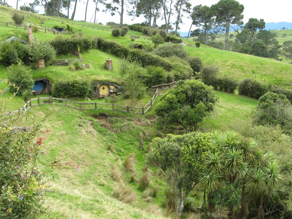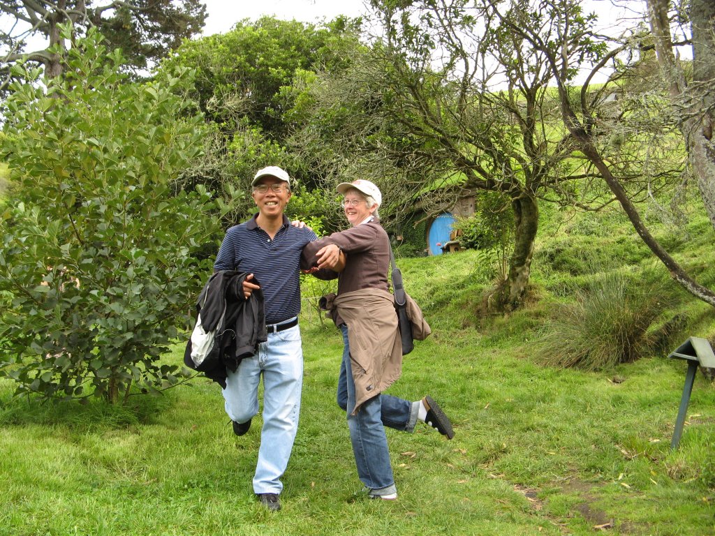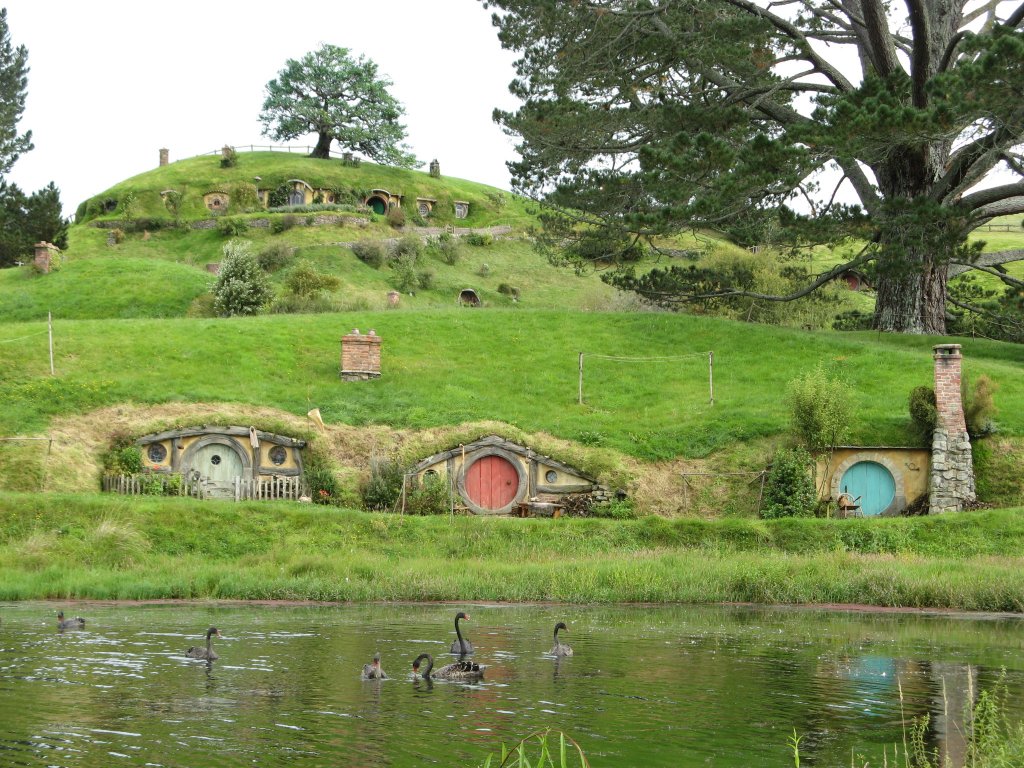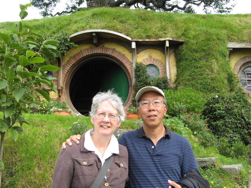 ![]() The Hobbit village cannot be seen from the public road – it is literally surrounded by, and hidden by, the rolling hills of the thousand-acre Alexander family sheep farm. After filming the Lord of the Rings, the movie set was supposed to be taken down. In the middle of removing the set, the property owner and the movie studio came to an agreement to leave the rest so that tourists can visit. That was the beginning of the Hobbiton Movie Set Tour. Since the movie set was not supposed to be permanent, the buildings deteriorated over the years. When Peter Jackson decided to come back to the same place to film the Hobbit, the set was re-built to be more permanent with the intention of leaving the entire set behind. We were so lucky to visit the new set. Five gardeners work full time to keep the Hobbit village looking pristine. The grass is cut shorter than it was for the film, so that tourists can see the details of the village. The thatch on the roofs of some of the structures is real thatch, reeds cut from a wetland near Wellington. One tree, the large one above Bilbo’s home (Bag End), is fake (sort of). The trunk and limps of the tree was cut from a site in Matamata. All the pieces were numbered and reassembled on the site, and thousands of silk leaves made in Taiwan were imported and attached to the branches. The tour was great, with our guide telling us inside stories of the filming, such as where the animals were kept, the fact that the Alexander farm’s sheep looked too modern, so for the movie they had to bring in more medieval-looking black faced sheep from another part of New Zealand (or from another part of the world?). After our Hobbiton tour (and quandary about souvenirs) we got back in the car. We quickly backtracked to Matamata to make sure there really was not a Lord of the Rings souvenir shop or gift shop in town. Then we got on to the main highway to head for Auckland. The distance was 125km. On the map, it looked like we would be driving on major roads. But it took four hours, mostly on two or four lane highway. NZ really does not have much limited access highway. Luckily we started early enough so we were not late for returning the rental car before the depot (rental car places are called in NZ) closes at 5pm. Our hotel at Auckland was very near the airport, as we had heard the city was not terribly exciting. We walked to a nearby shopping center for dinner where David had Indian food and I had Singapore fried noodles. At this point, the decent shower, good bed, watching a little New Zealand TV [it is actually mostly American TV – as far as I can tell, they only have one channel that have NZ stuff; the rest are basically American TV shows and movies; they even have NBC Nightly News! They did have a reality TV show called "New Zealand's strictest parents" (!!)] was good enough as we were psyched for the long series of flights home. Friday morning March 9th we started early with a 4:30 am wake up call and drove to the airport to fly to Sydney where we went through in and out of Australian customs and immigration because we used different airlines between Auckland-Sydney and Sydney-San Francisco. At San Francisco, we went through the US customs and immigration, again. Because we reported that we came back from NZ and had been to the countryside and in contact with sheep, the custom agents have to clean and disinfect our hiking boots (Nice to see our civil servants actually get their hands dirty and clean our boots.) Here the layover was just a two hour wait, then on to Seattle. After a 20+ hour from start, we got back to Seattle about 6 pm and home about 7 pm. That was the end of our month-long journey. We heard opinions that traveling for a month is too long. Typically you might long to go home by the third week. It is interesting that we didn't feel that way on this trip. Having a change in travel companions seemed to make the difference. This trip went from staying with friends at their home in Sydney to solo (if you can call a married couple "solo") in Kangaroo Island. Then came the Kepler Trek with two friends, followed by the travel with 8 others in the South Island. And finally "solo" again in the North Island. It was largely smooth sailing, and the variety made it enjoyable. §§§ The End §§§ Sign Guestbook Back to Home Page AU-NZ Home Sydney Kangaroo Island Kepler Track South Island Mt Doom Rotorua |