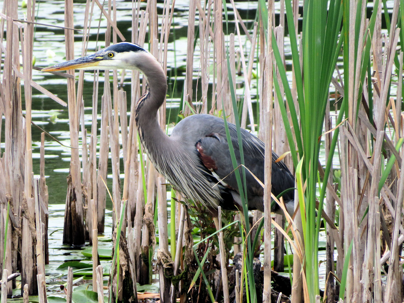 (Left) Stalking Great Blue Heron (Marymore Park) (Right) Lincoln Sparrow (Marymore Park)