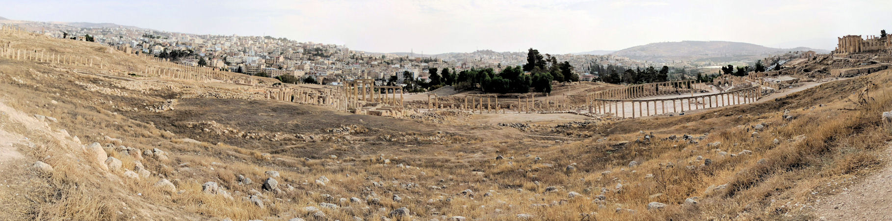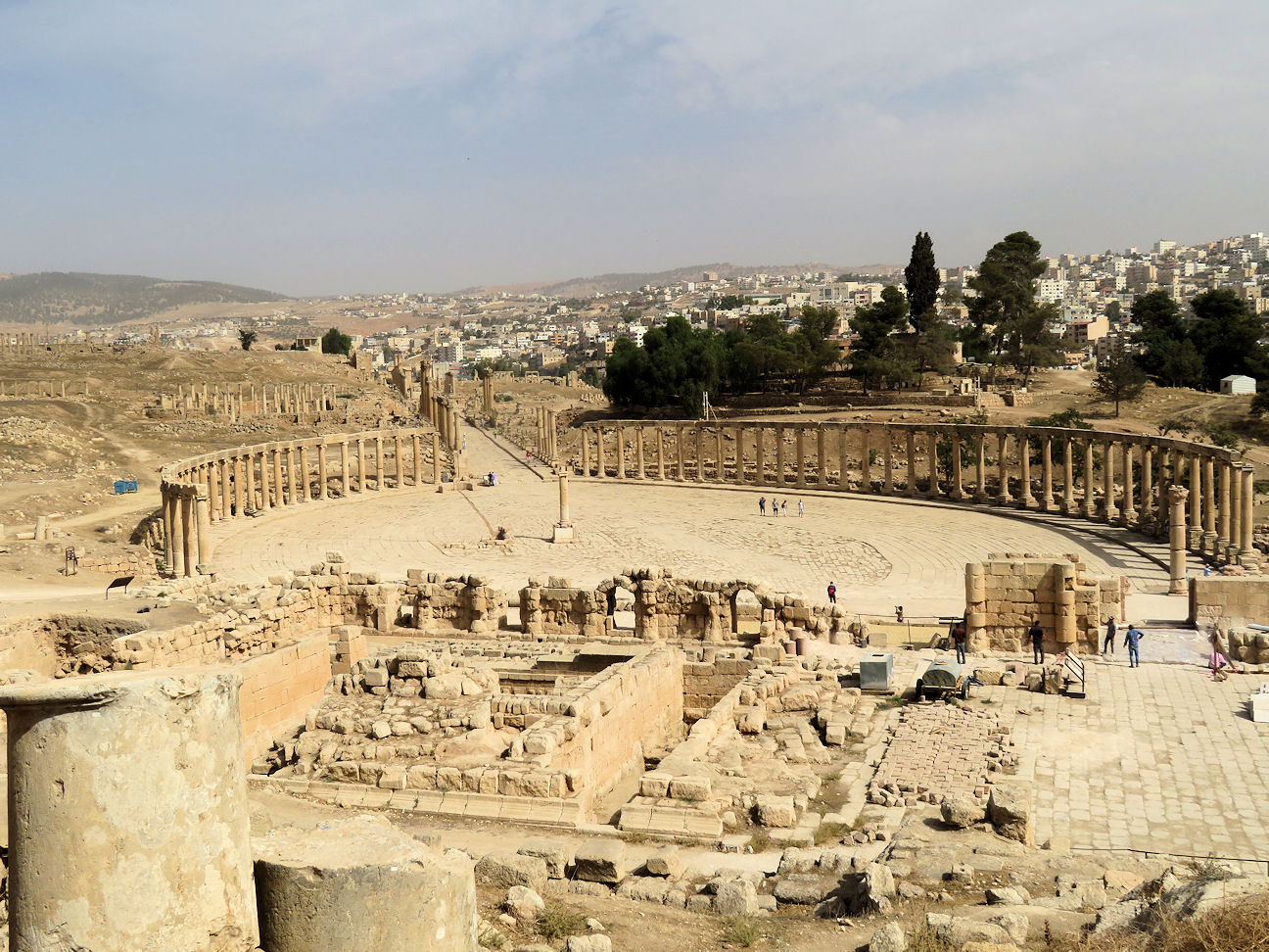 Jerash and AjlunThe next day we drove 30 miles north to Jerash, famous for the Greco-Roman settlement of Gerasa. The ruins consist of Roman structures built over Greek developments. It is a very large area. Many of the structures were buried due to earthquakes and landslides. Excavations are still being conducted today. However, the minor digs have been re-buried to preserve them. There were Roman temples, Christian churches and mosques built on top of each other over the years. Ayman told us that this practice was just for convenience (availability of building materials, etc.). The old buildings were not torn down - they were already in ruins.